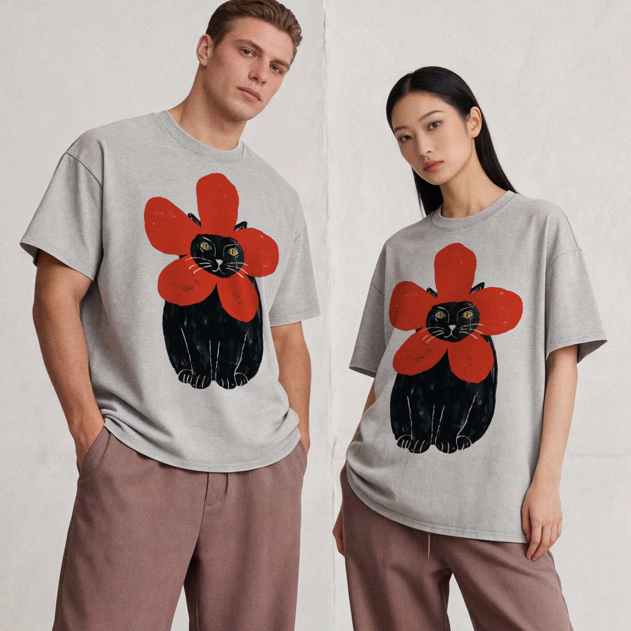 The Blooming Meow - Snow Washed Oversized Cotton T-Shirt